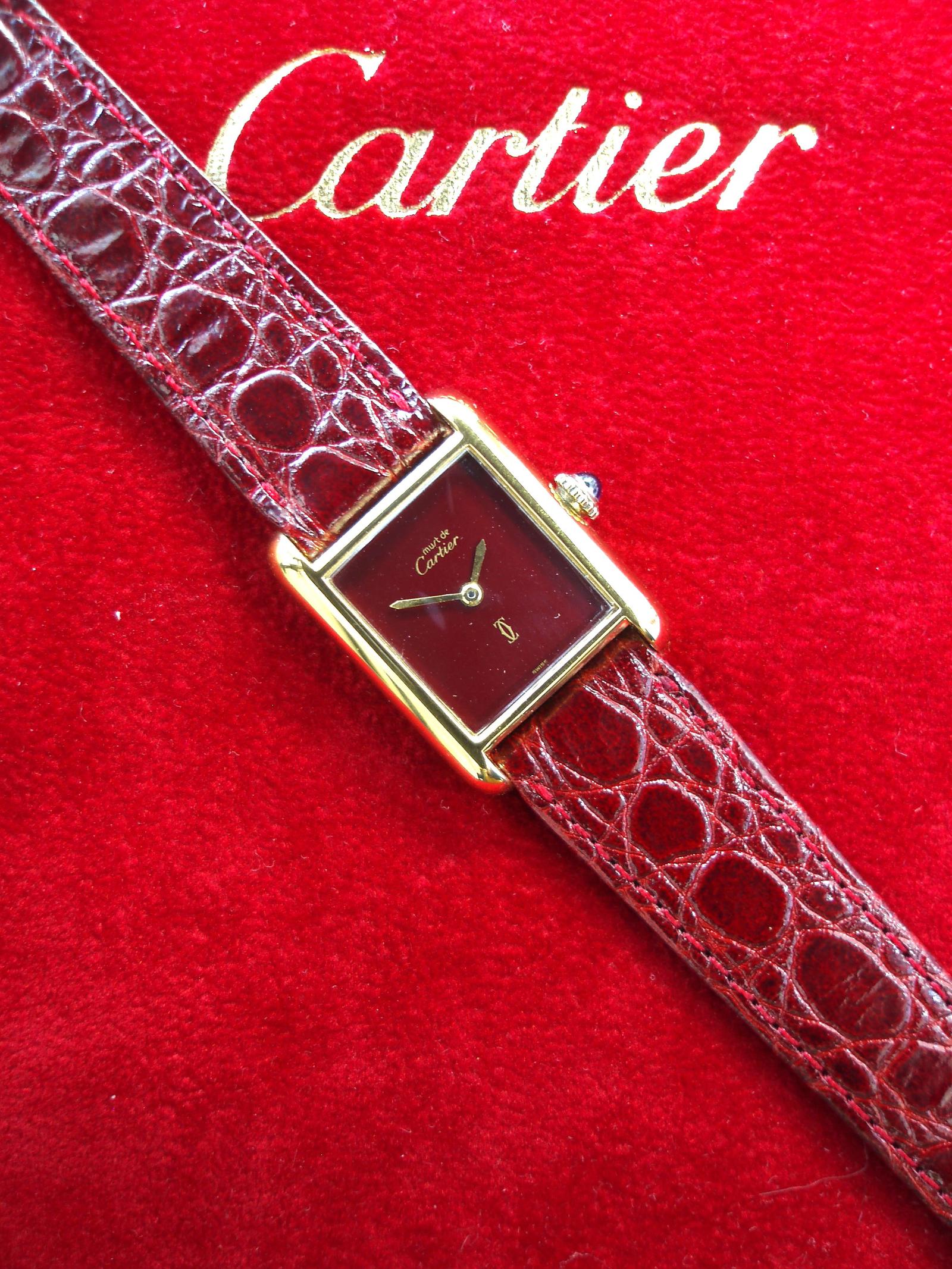 Cartier Ladies Burgundy Tank Watch