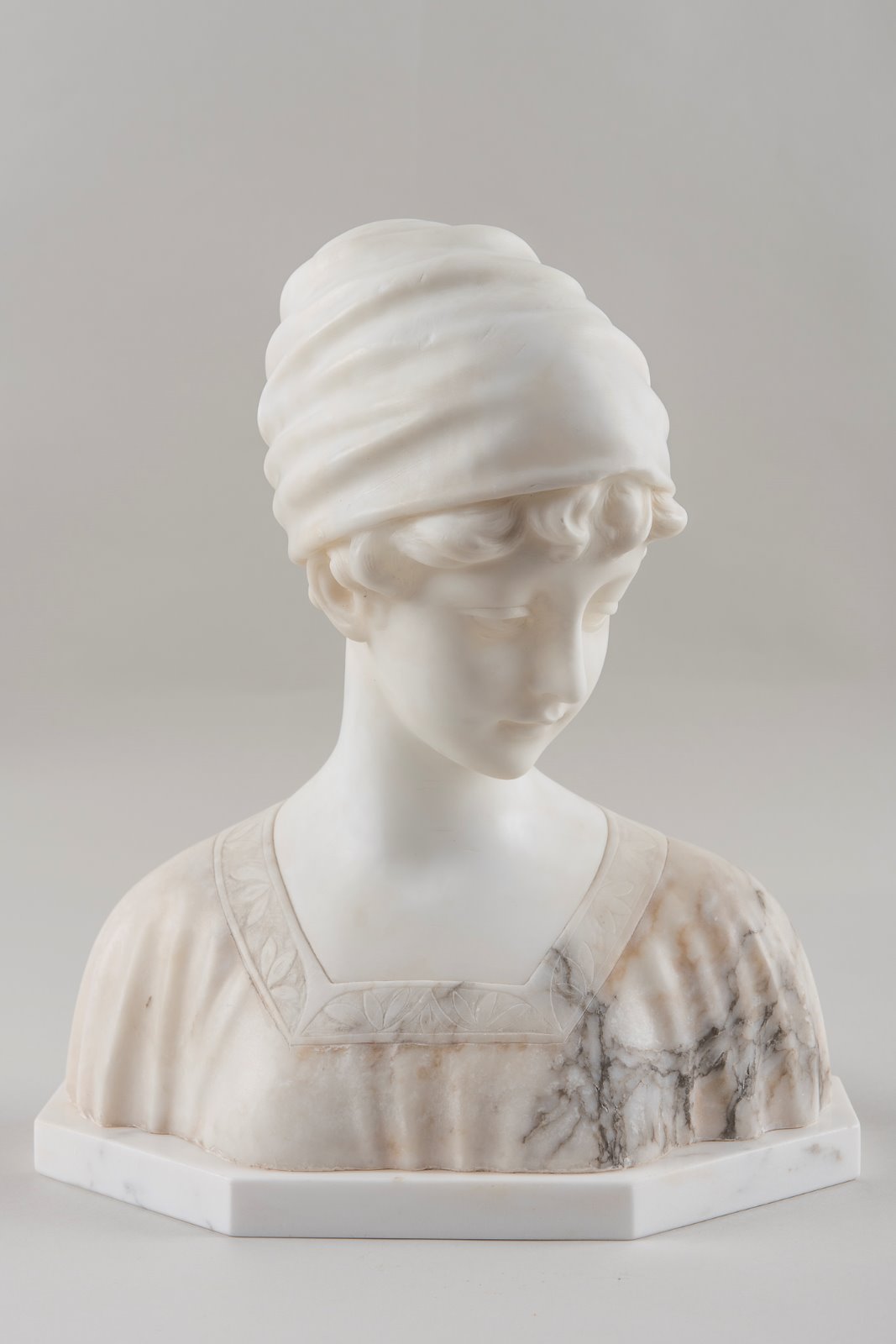 Carved Alabaster Sculpture of a Girl, Signed Morin German Artist Georges Morin