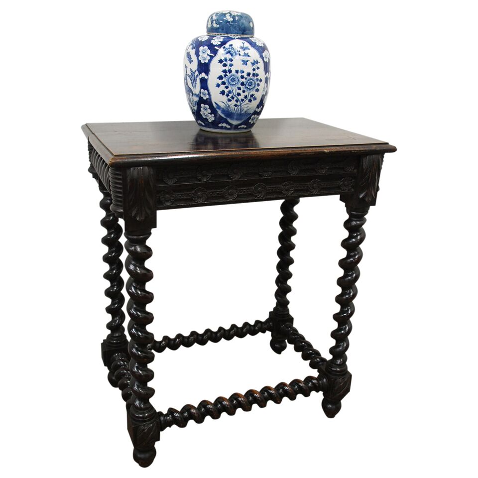 Carved and Stained Antique Oak Side Table (1 of 7)