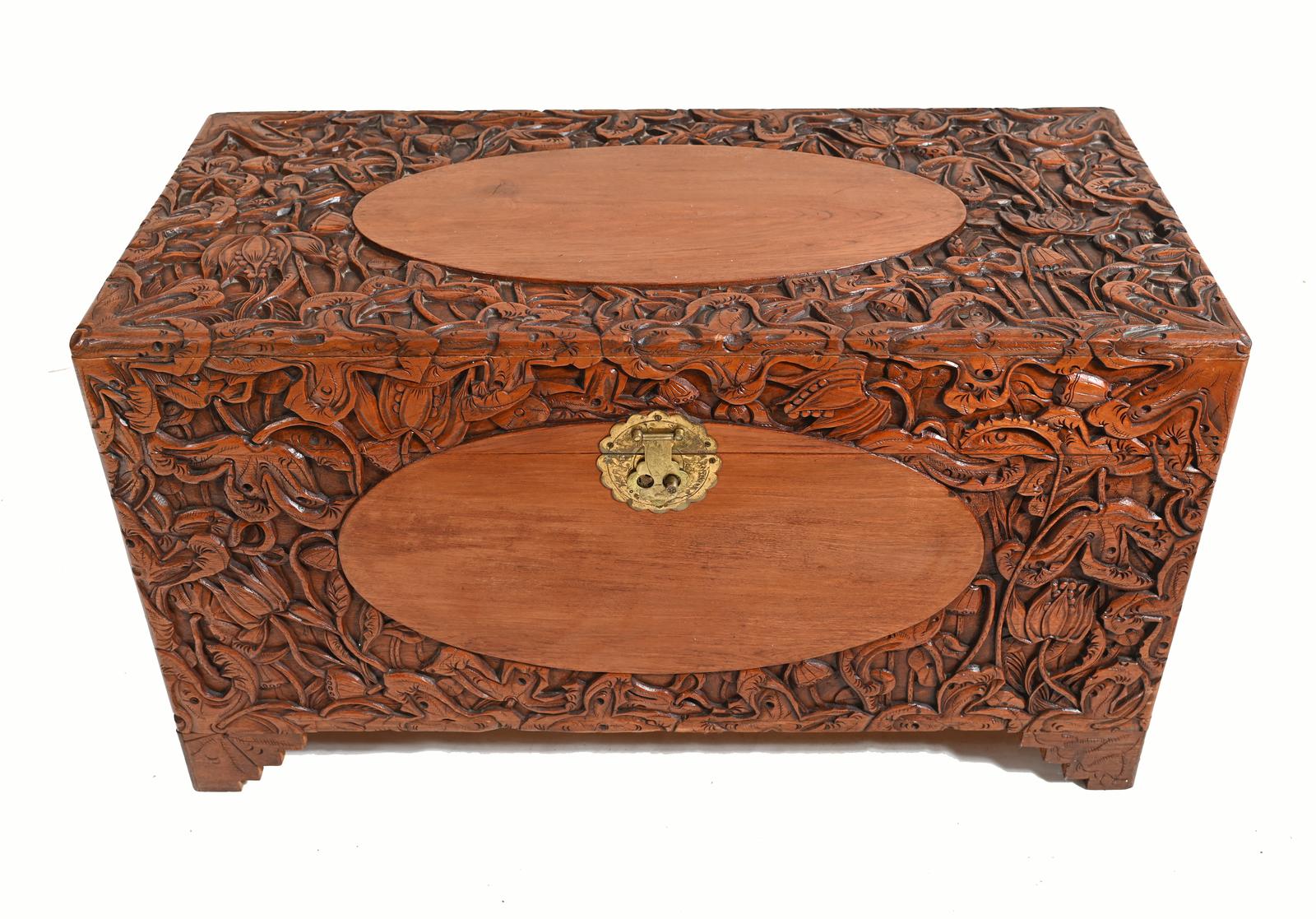 Carved Antique Camphor Chest Chinese Sailors Trunk