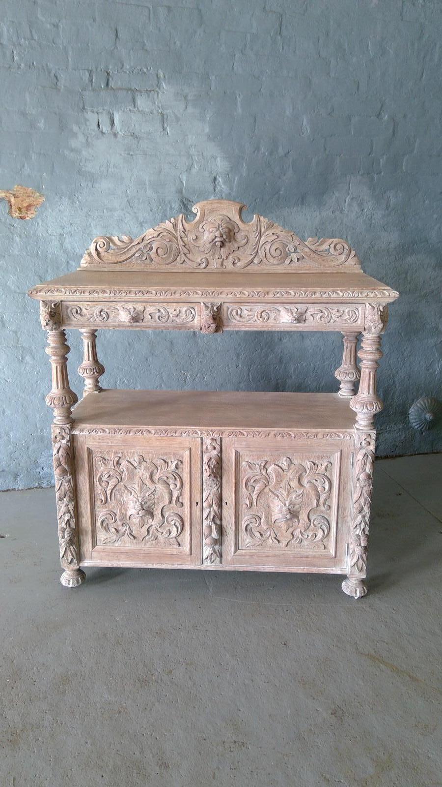 Carved Antique Oak Buffet Server in a Bleached and Limed Finish