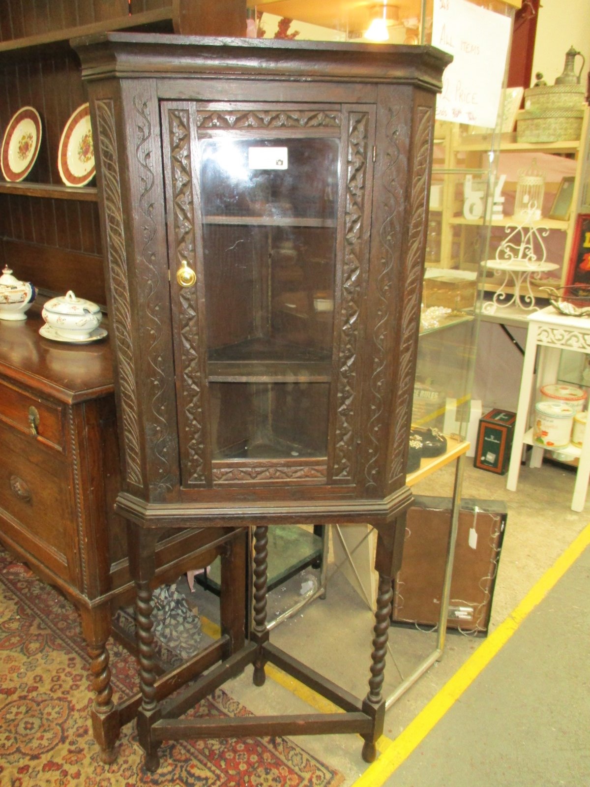 Carved Barley Twist Corner Cabinet