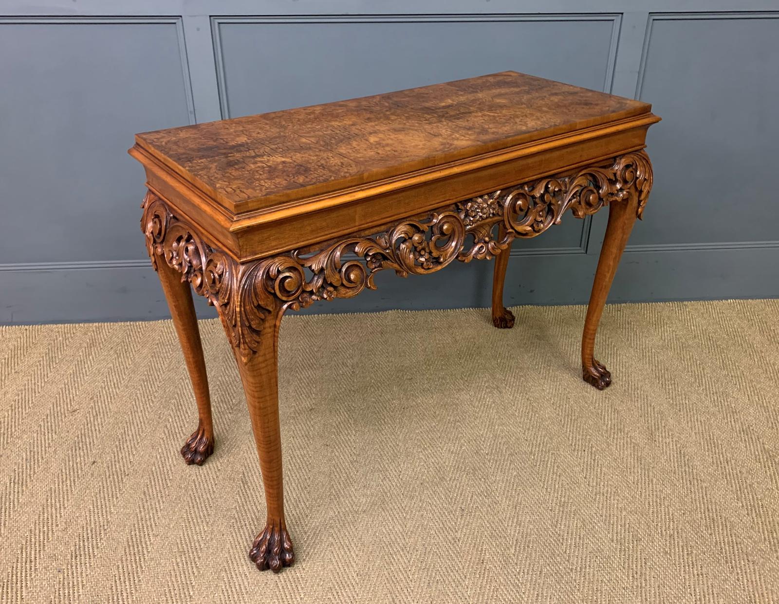 Carved Burr Walnut Console Table