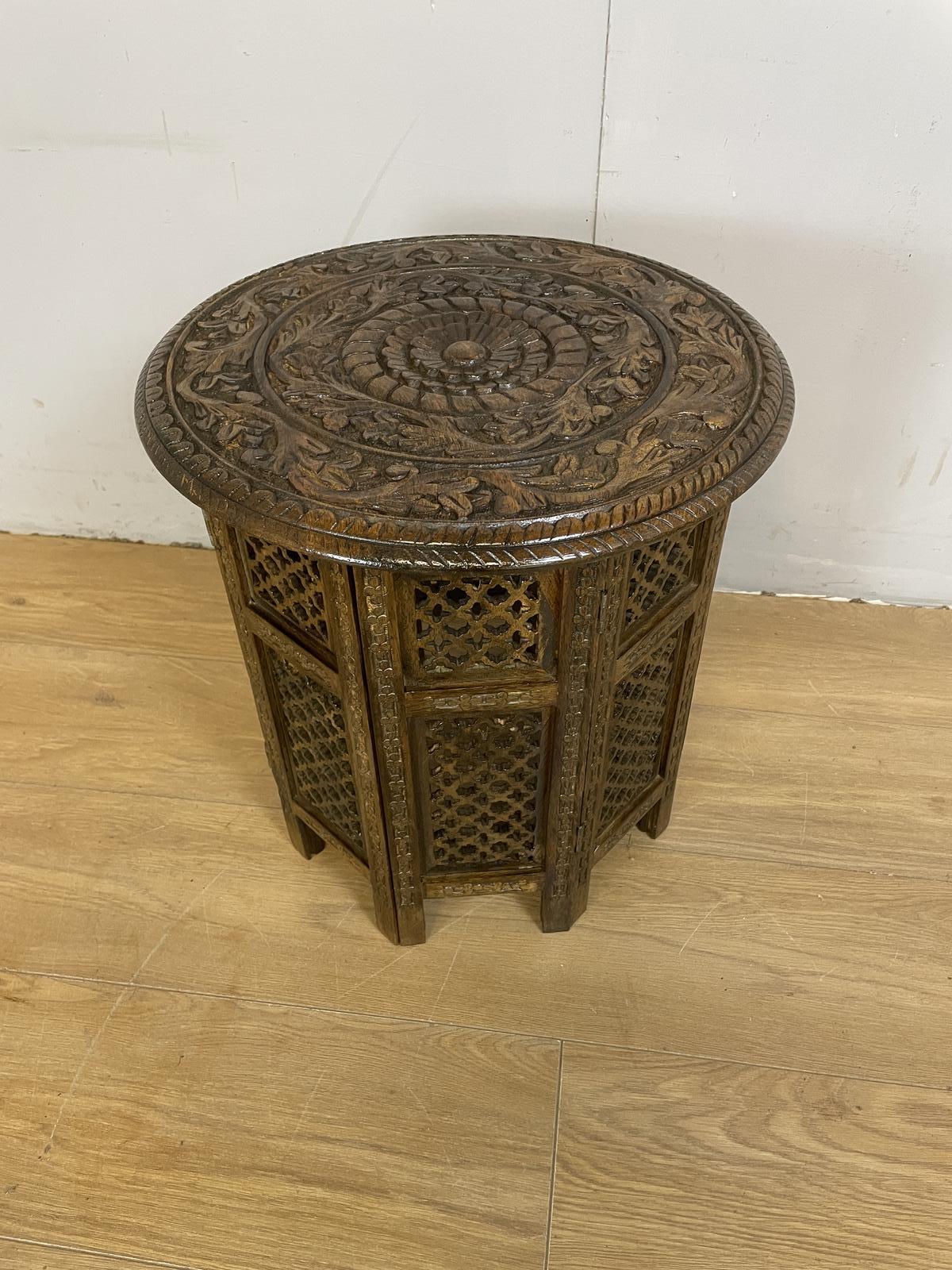 Carved Circular Oriental Table on an Octagonal Base