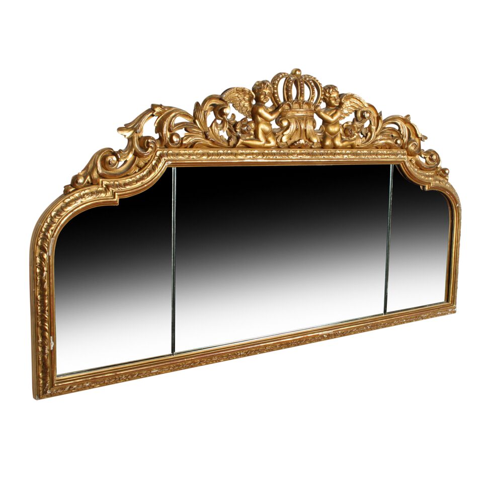 Carved Crown Design Antique Overmantel Mirror (1 of 1)