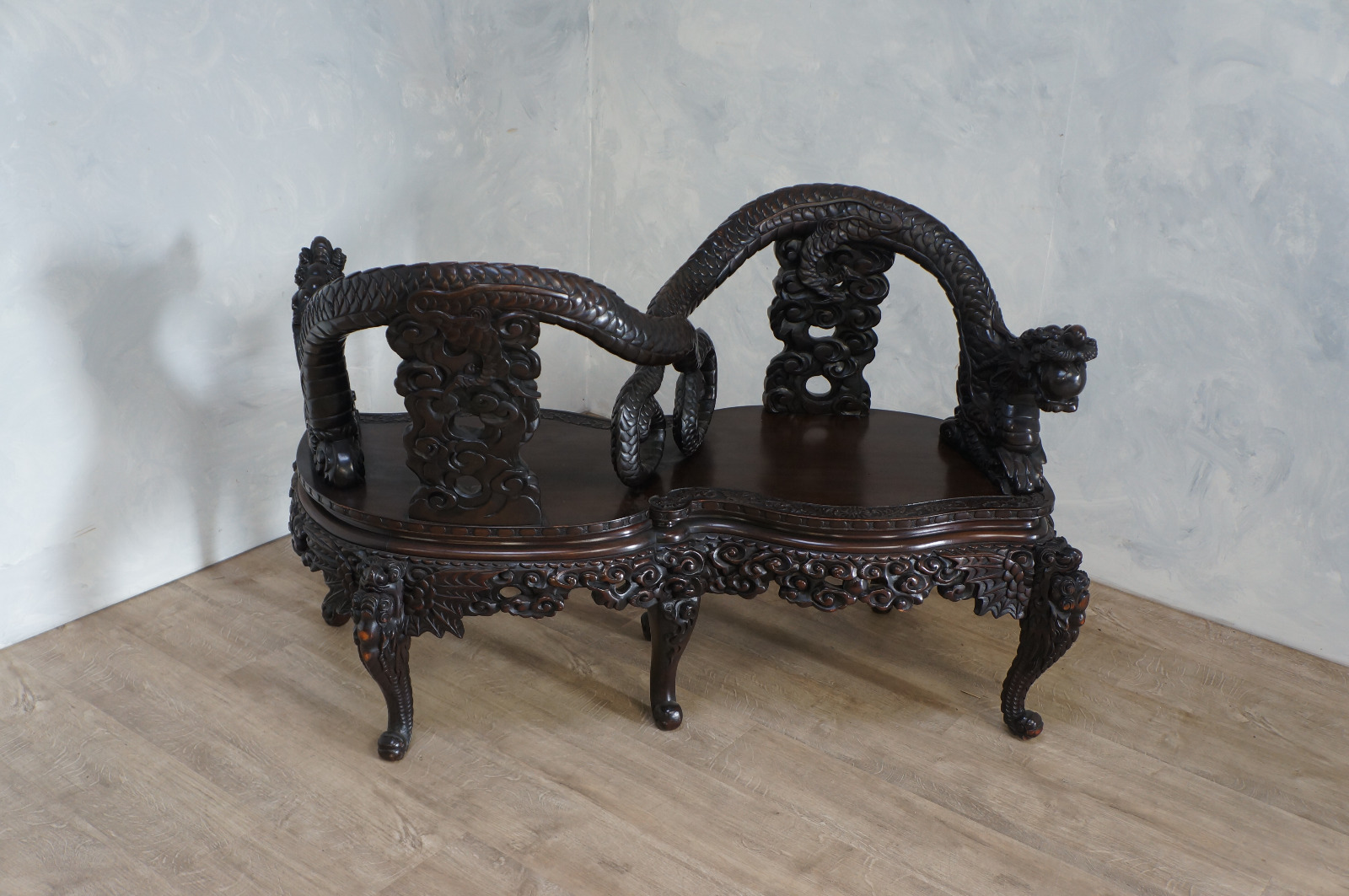 Carved Dragon Duet Bench c.1900