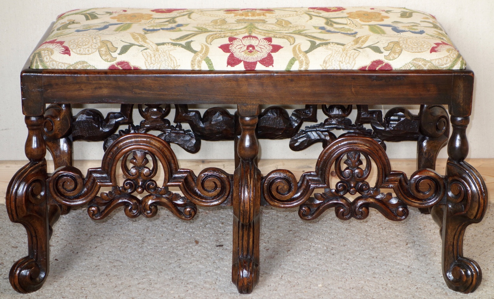 Carved Edwardian Mahogany & Walnut Foot Stool (1 of 1)