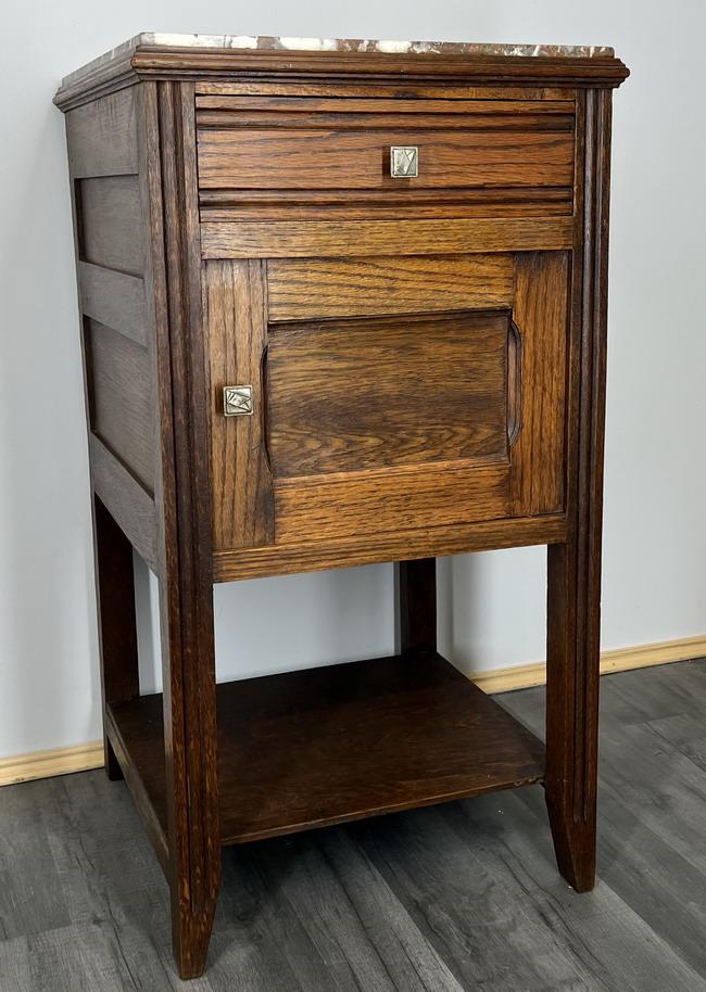 Carved French Antique Bedside Cupboard / Cabinet With Marble Top