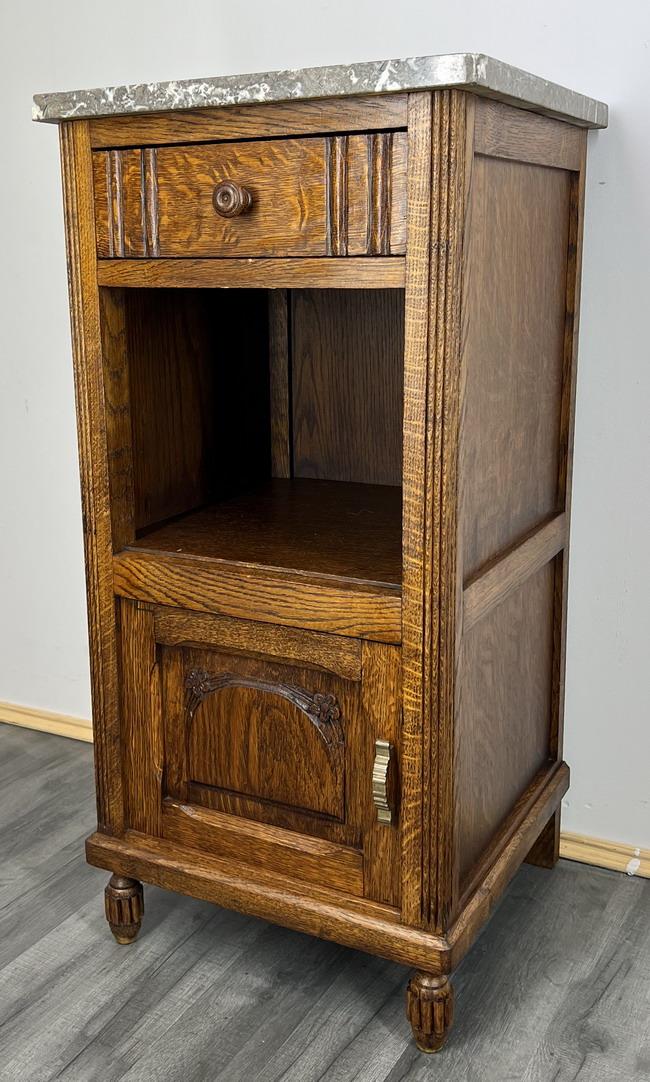 Carved French Antique Bedside Table Cupboard Cabinet With Marble Top