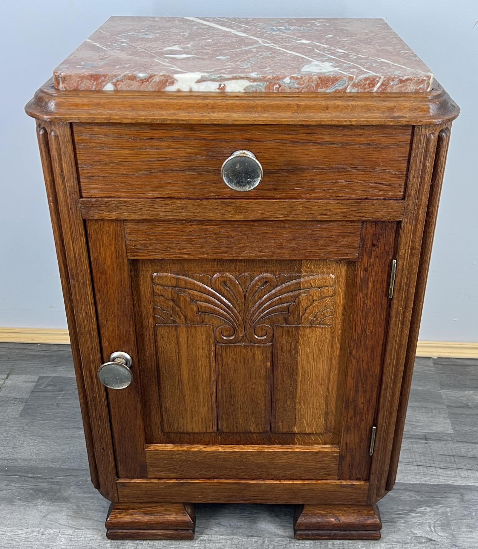 Carved French Antique Bedside Table Cupboard Cabinet with Marble Top