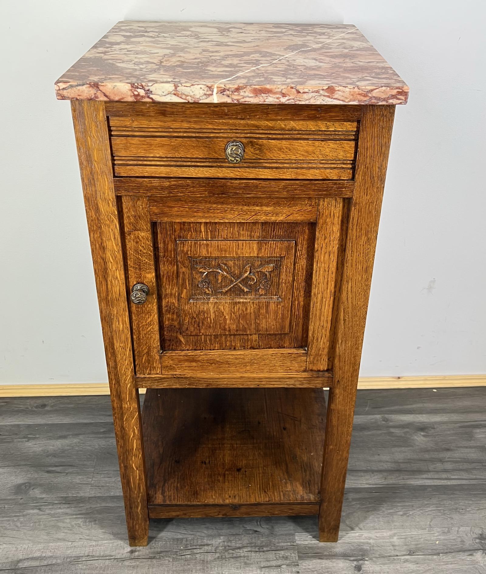 Carved French Antique Bedside Table Cupboard Cabinet with Marble Top