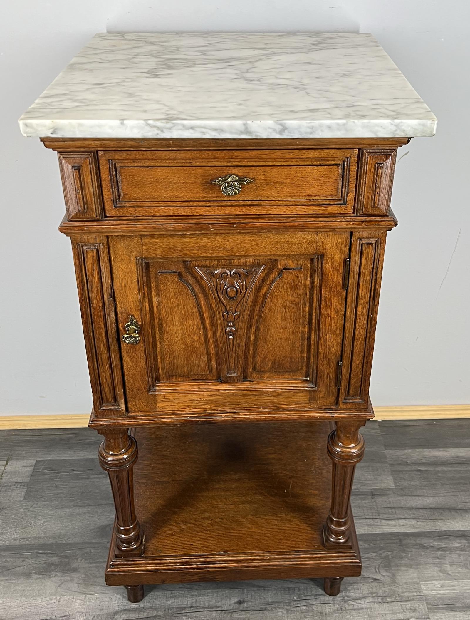 Carved French Antique Bedside Table Cupboard Cabinet with Marble Top