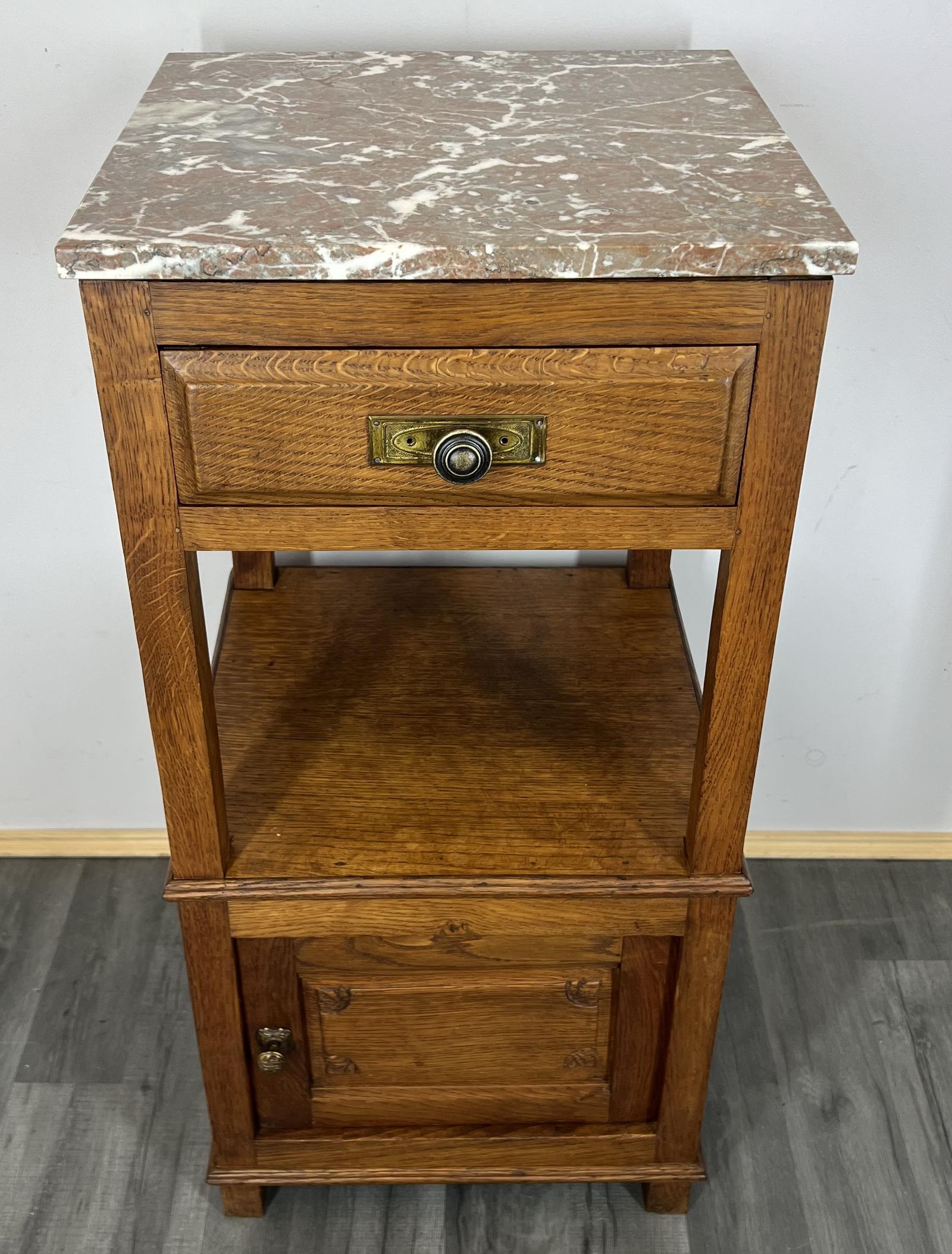 Carved French Antique Bedside Table Cupboard Cabinet with Marble Top