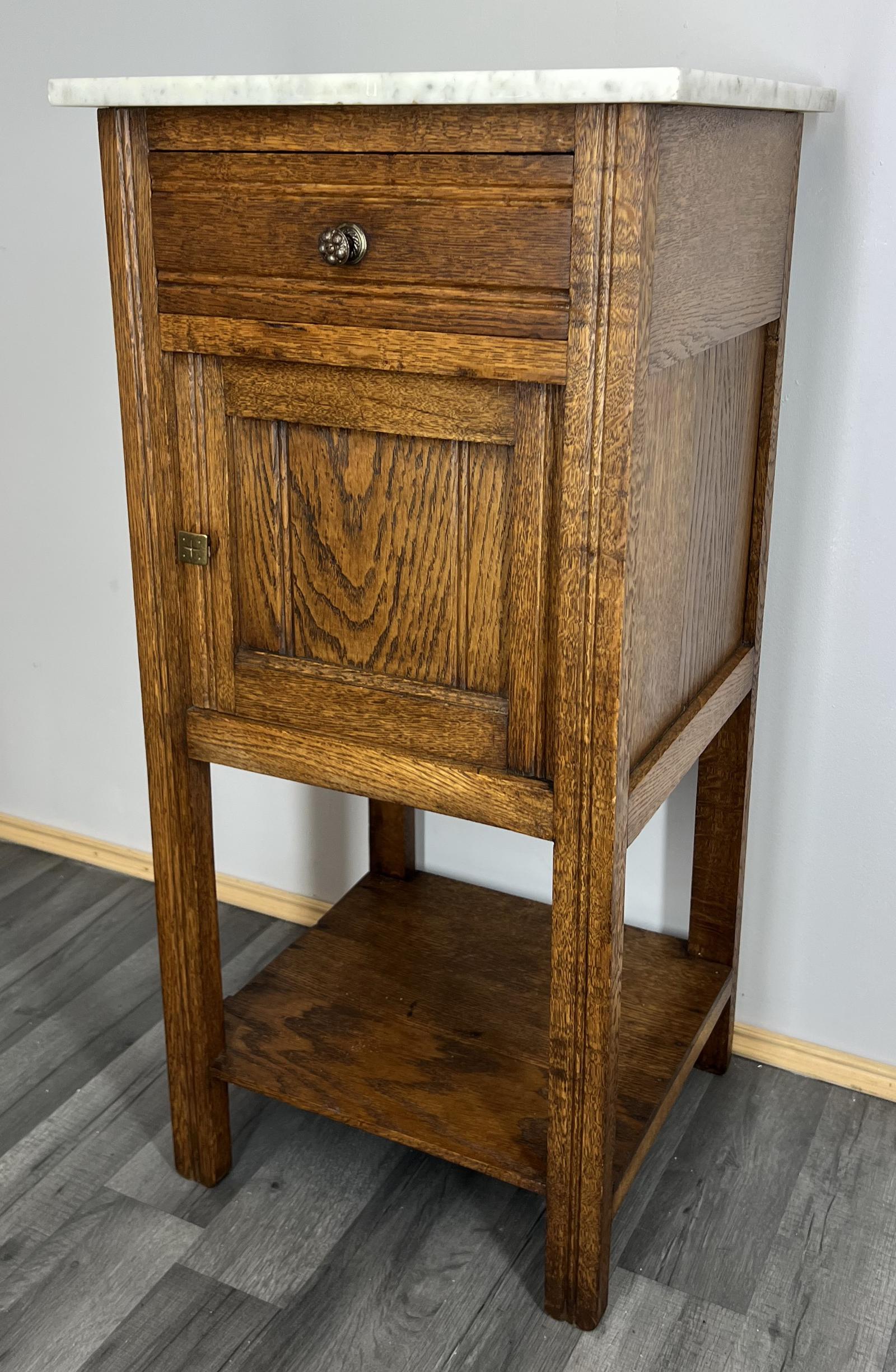Carved French Antique Bedside Table Cupboard Cabinet with Marble Top