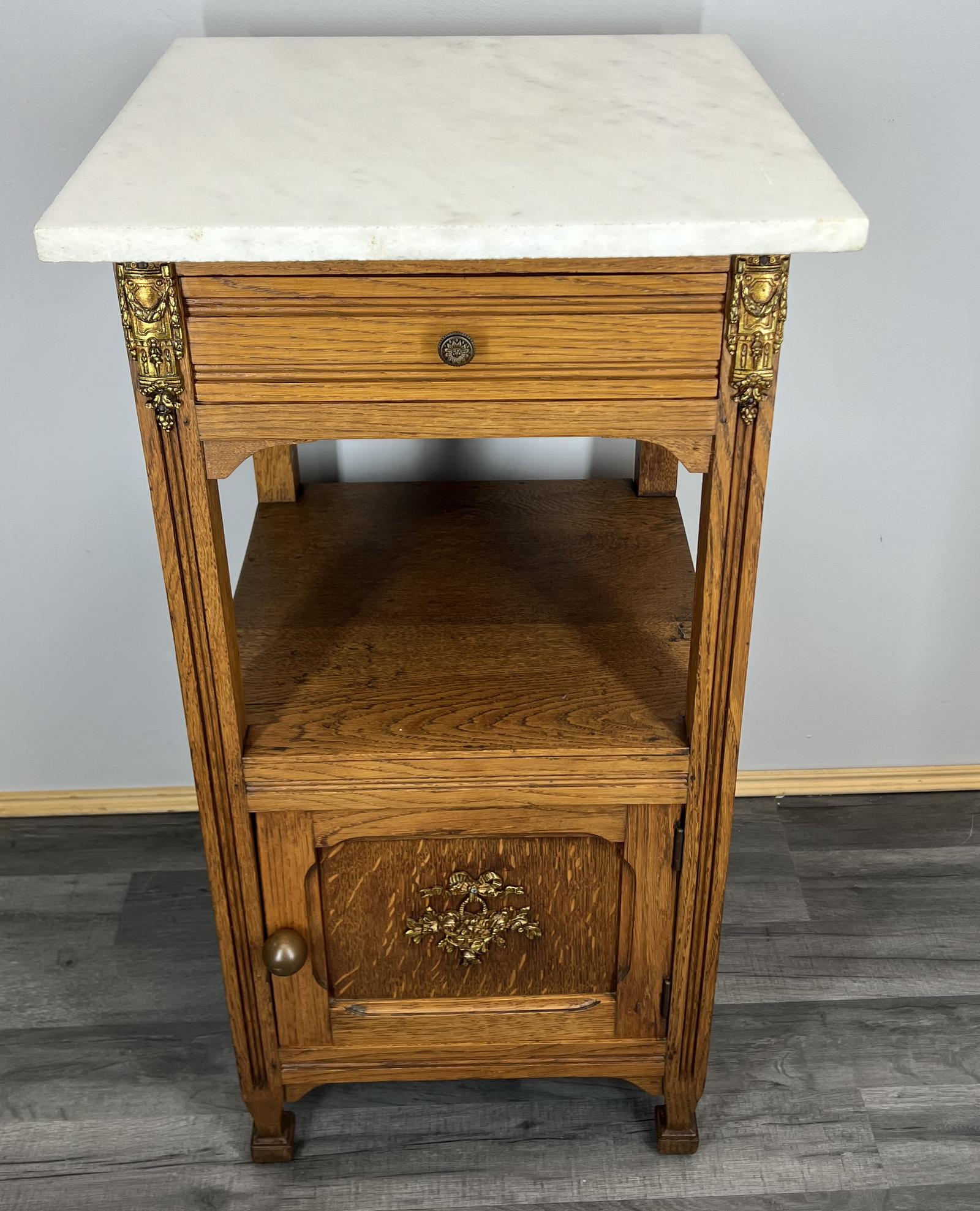 Carved French Antique Bedside Table Cupboard Cabinet with Marble Top