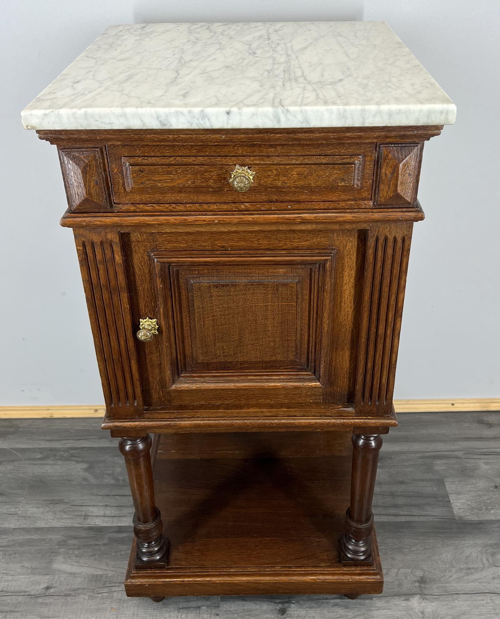Carved French Antique Bedside Table Cupboard Cabinet with Marble Top (1 of 11)