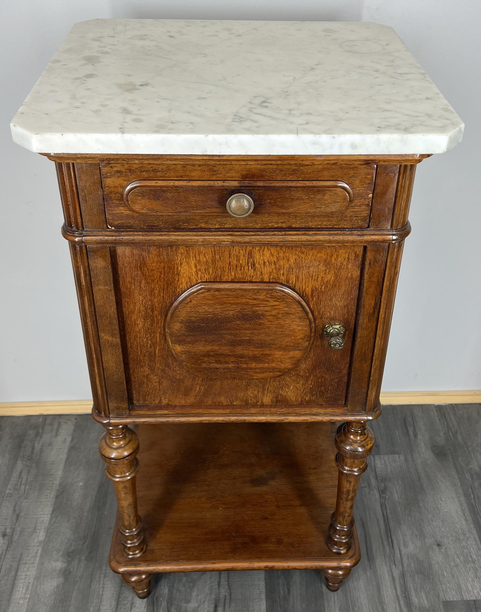 Carved French Antique Bedside Table Cupboard Cabinet with Marble Top
