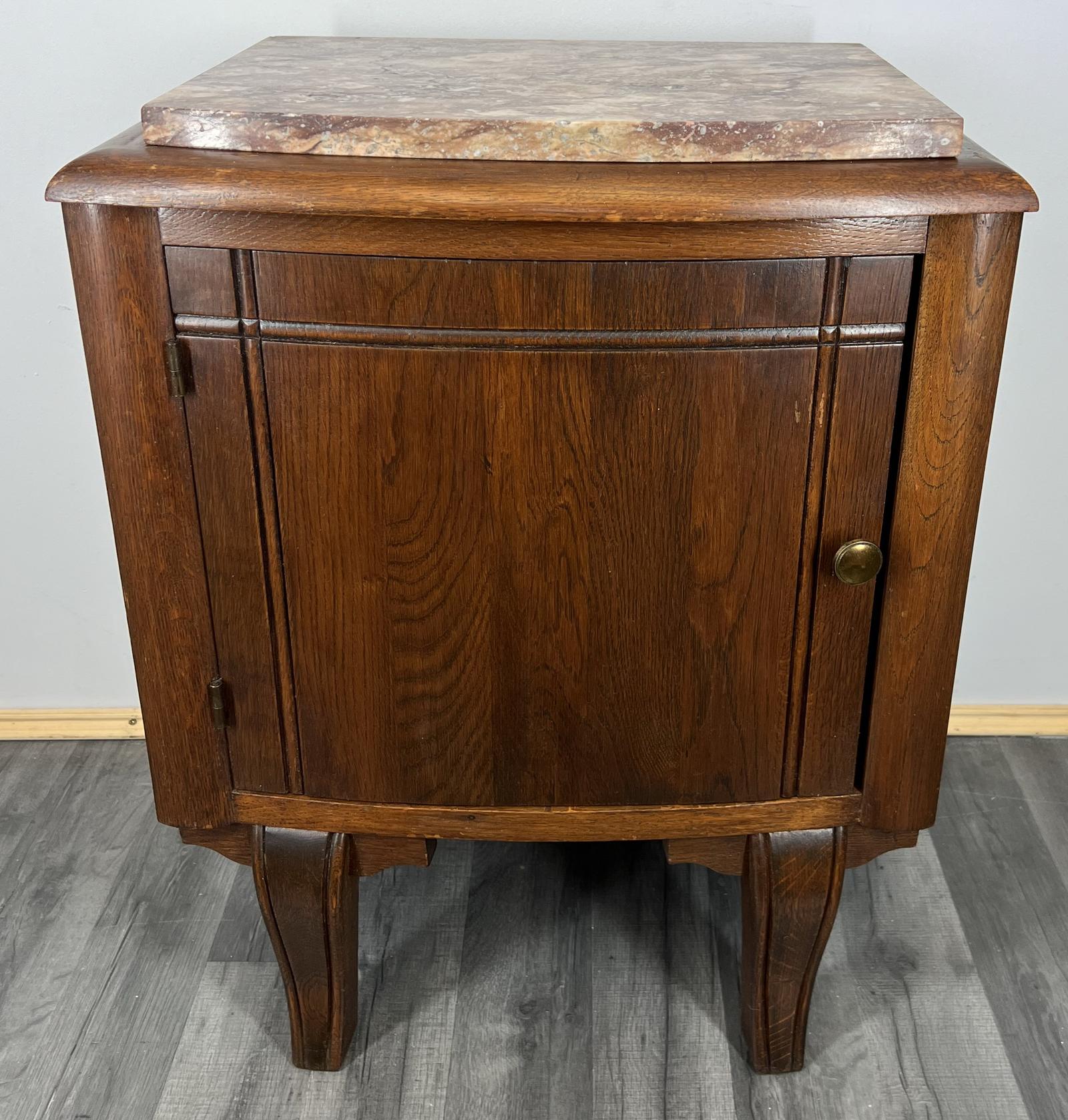 Carved French Antique Bedside Table Cupboard Cabinet with Marble Top