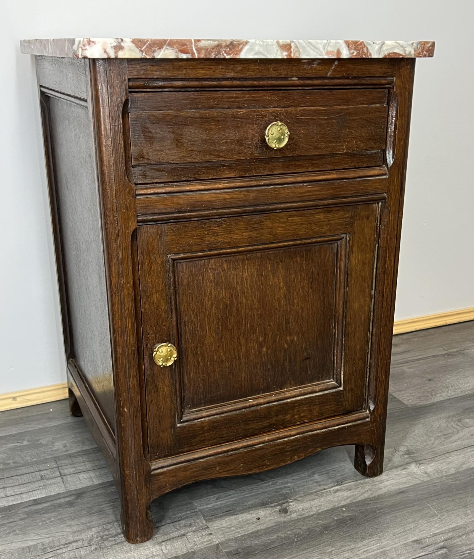 Carved French Bedside Table / Cupboard / Cabinet with Marble Top