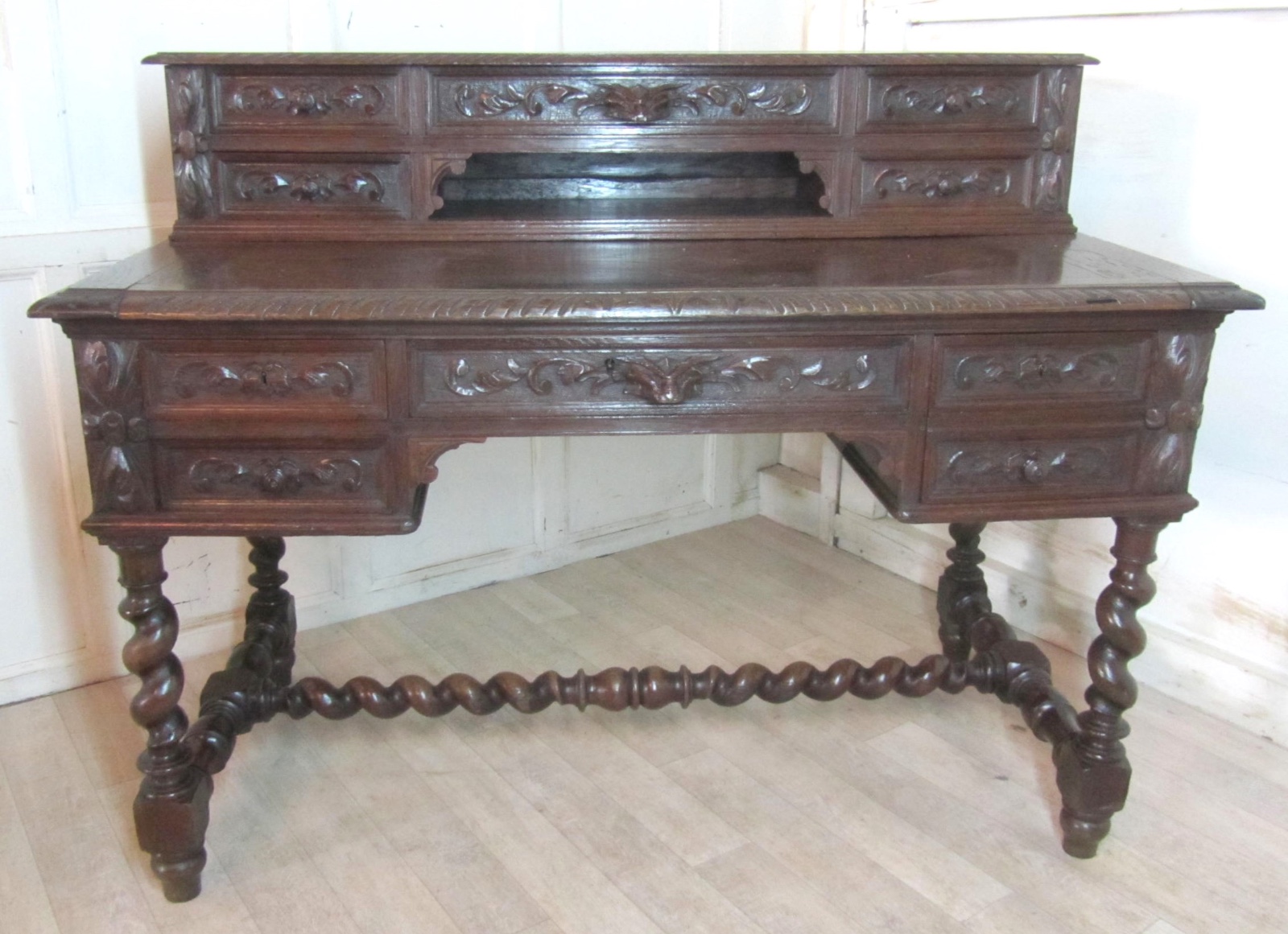 Carved French Oak Bonheur de Jour / Writing Table / Desk