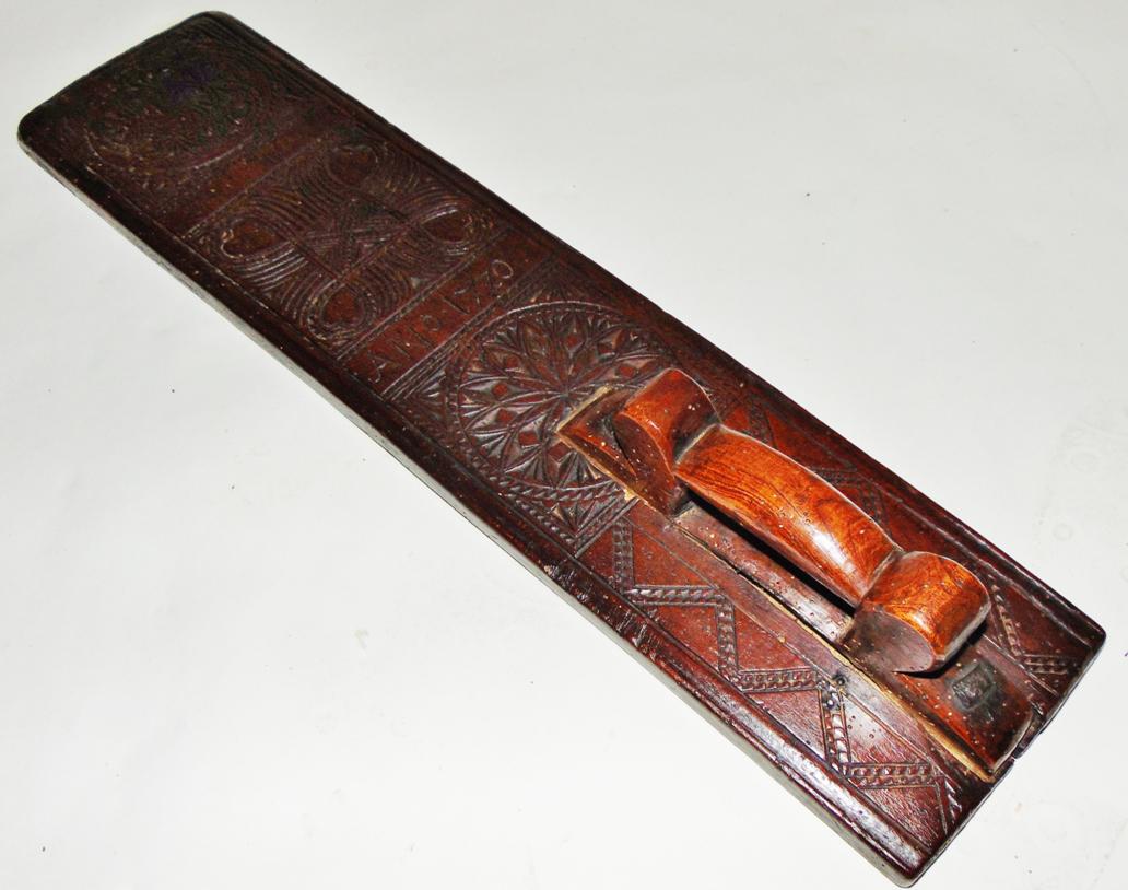Carved Fruitwood Freizland Mangelplack, Dated 1720