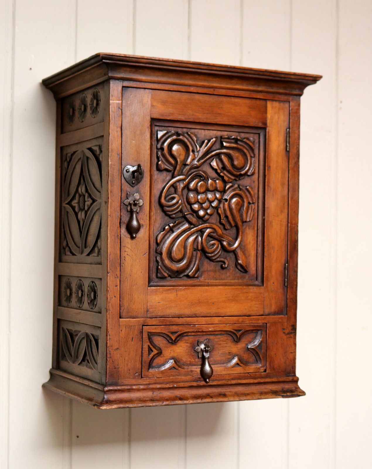 Carved Fruitwood Wall Cabinet c.1900 (1 of 1)