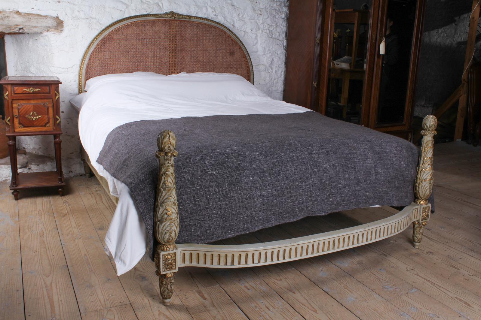 Carved Gilded Caned French King Size Bed