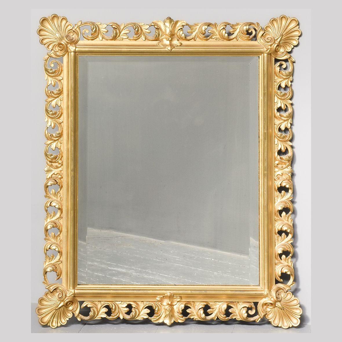 Carved Giltwood Florentine Bevelled Glass Wall Mirror