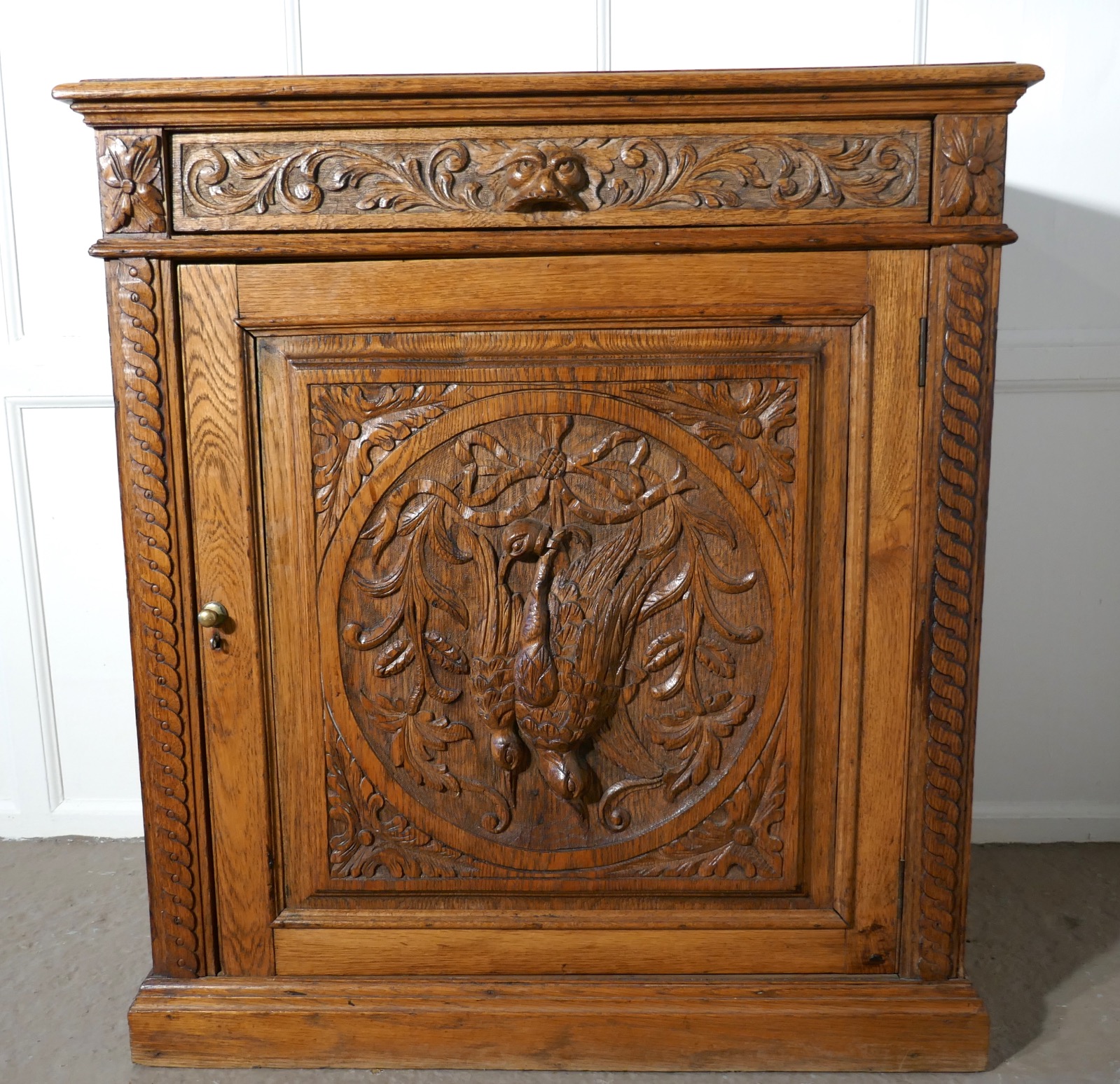 Carved Golden Oak Game Cupboard
