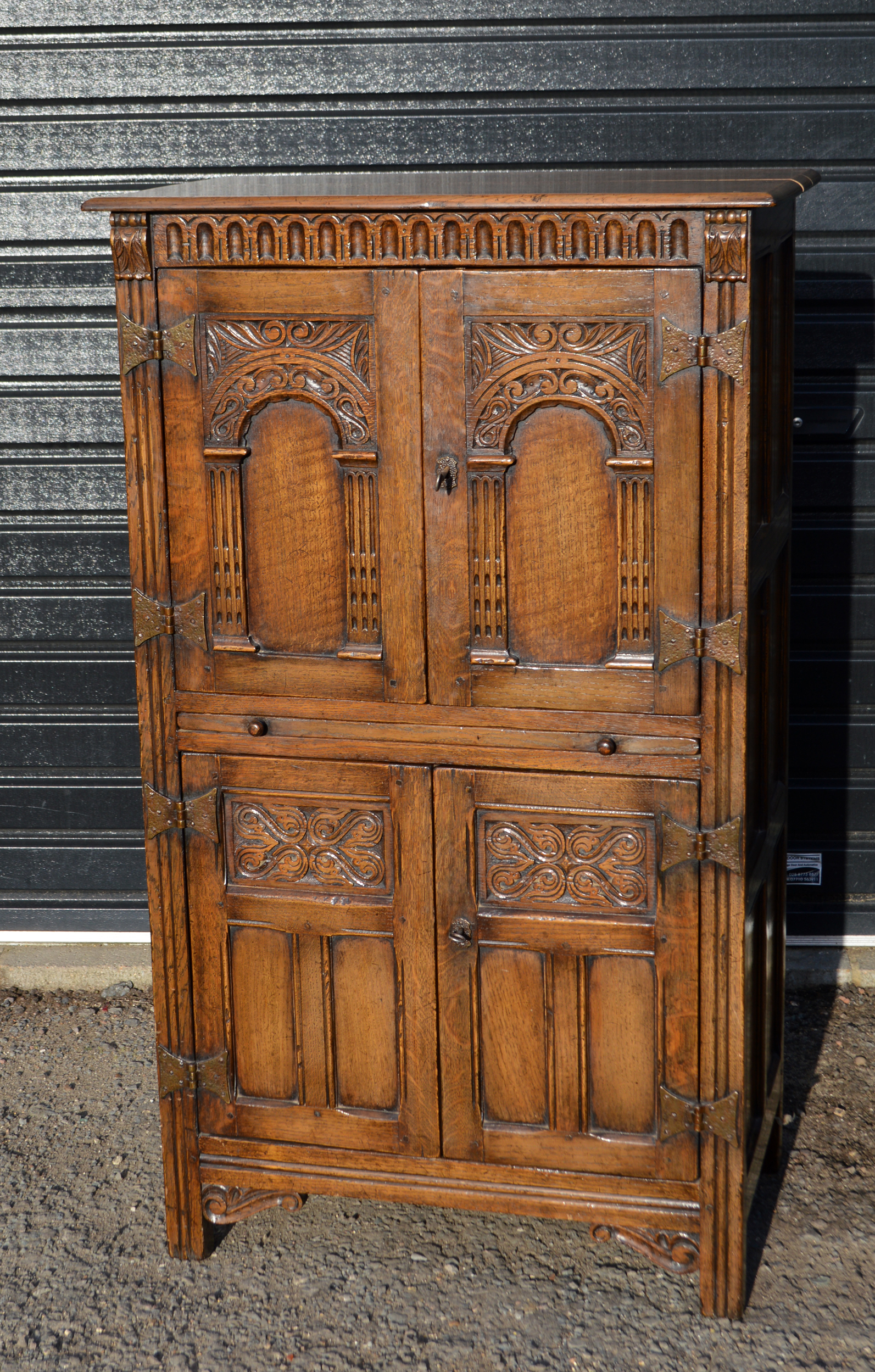Carved Ipswich Oak Cocktail Cabinet / Drinks Cabinet / 4 Door Cabinet