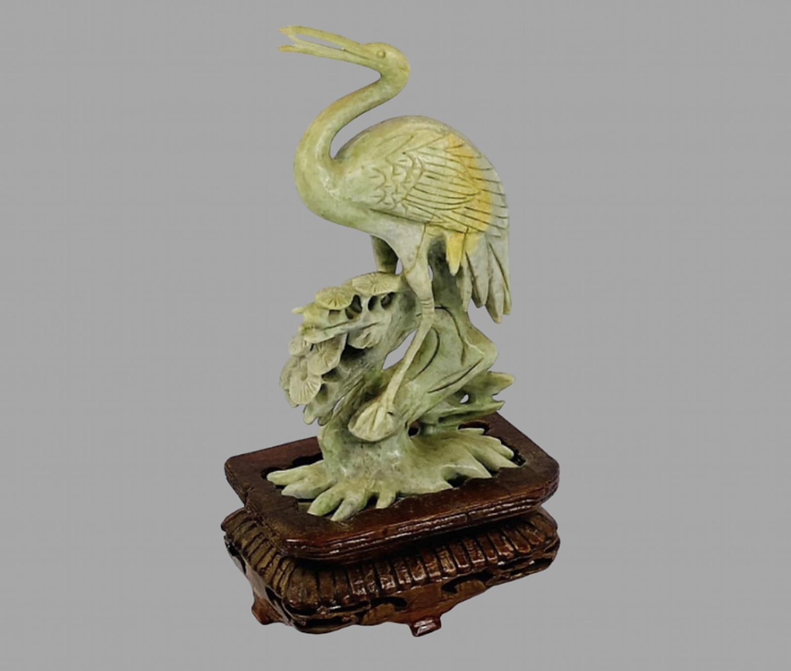Carved Jade Crane Figure on Lacquered Wooden Base (1 of 4)