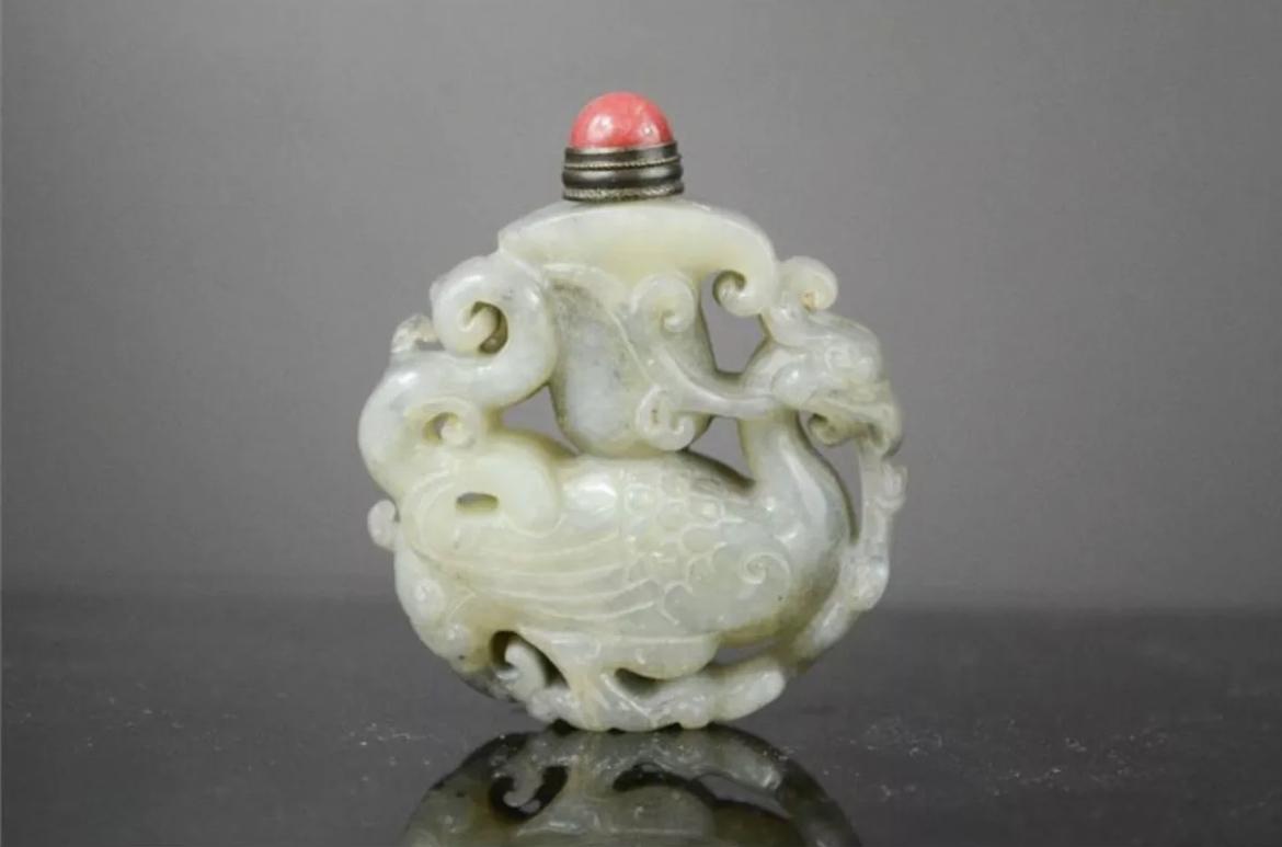 Carved Jade Snuff Bottle with Red Coral Stopper, China c.1850
