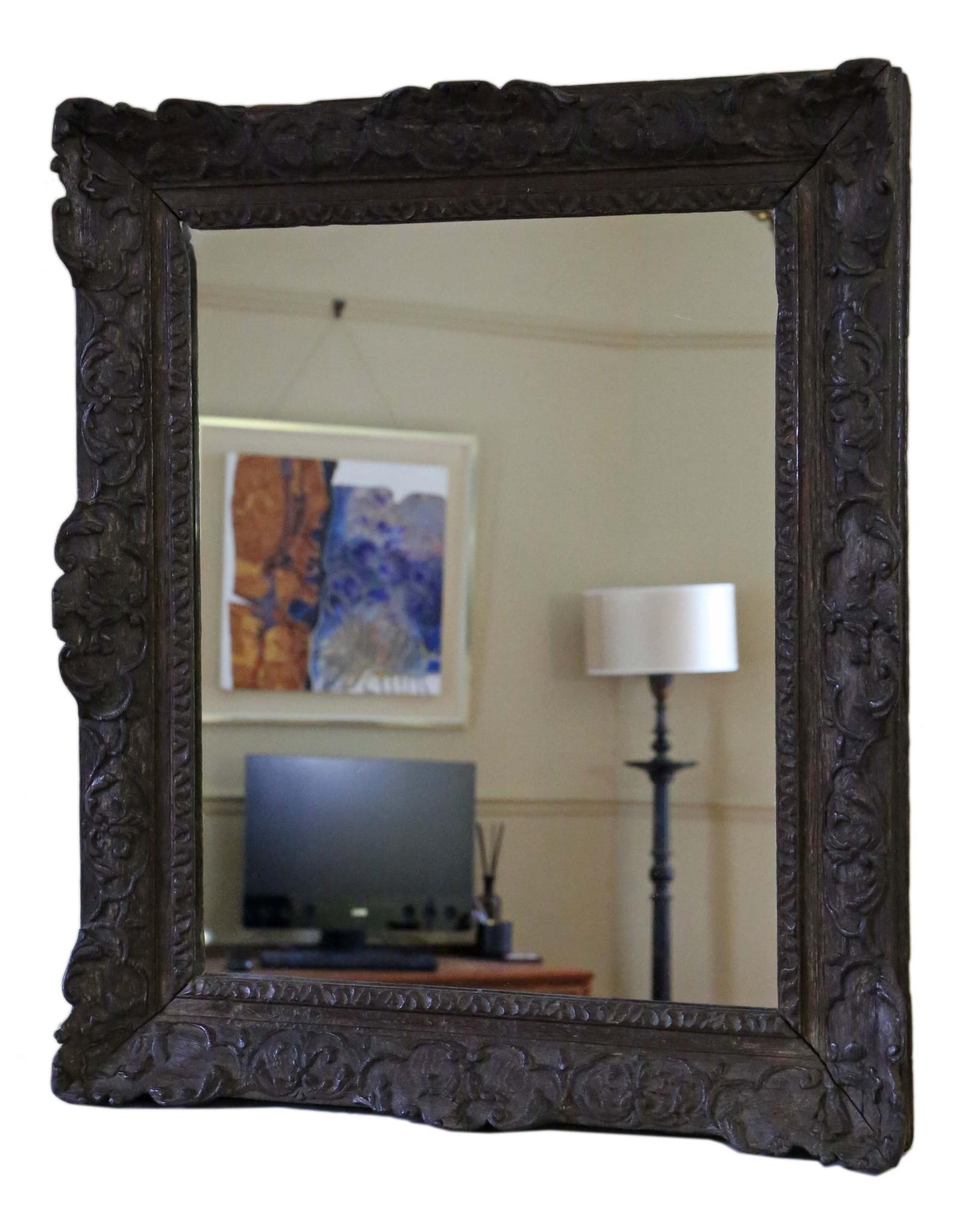 Carved Oak 19th Century Overmantle or Wall Mirror