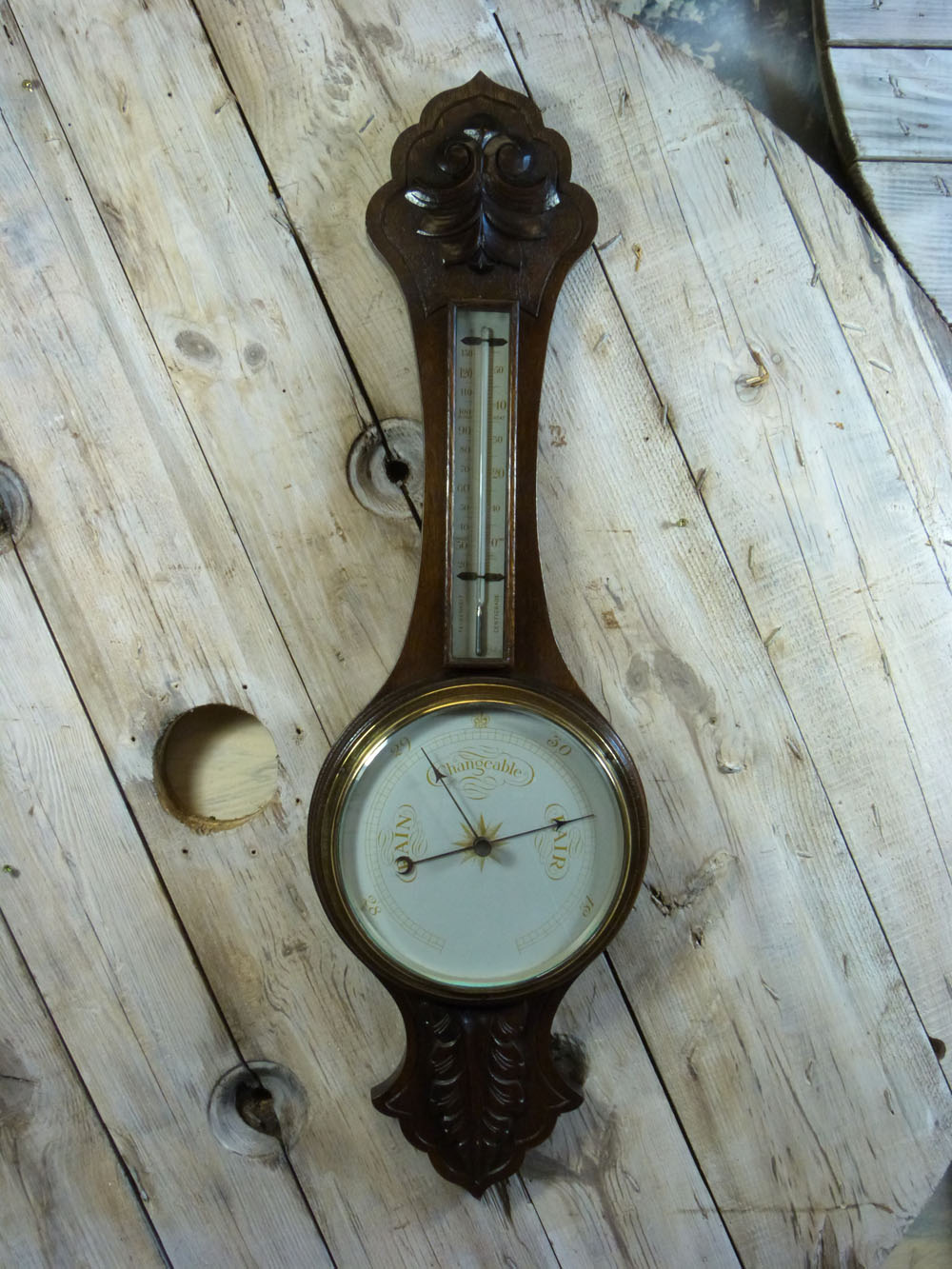 Carved Oak Aneroid Barometer C.1910