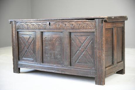 Carved Oak Antique Chest Coffer (1 of 12)