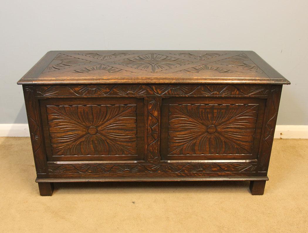 Carved Oak Antique Coffer Chest Blanket Box (1 of 12)