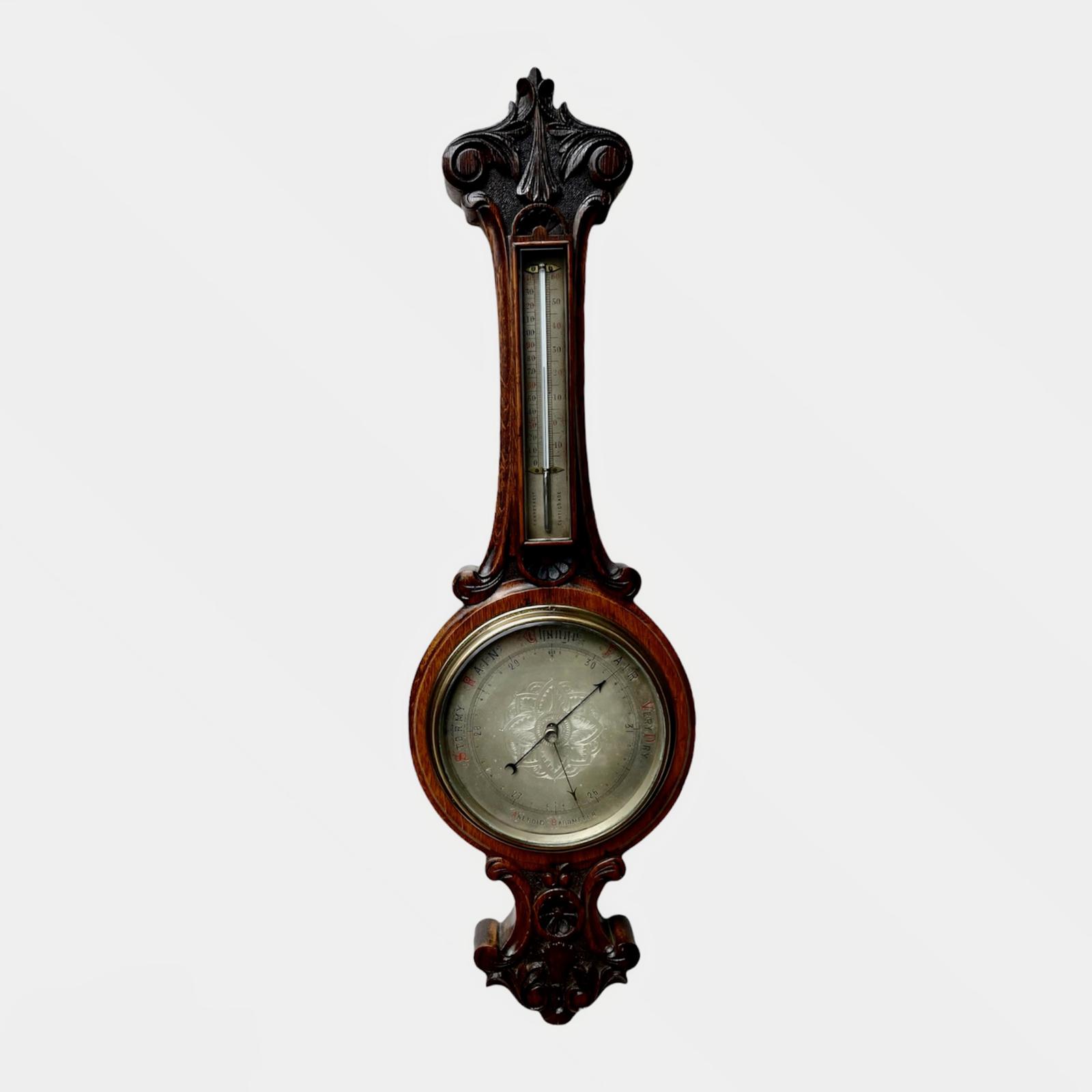 Carved Oak Banjo Barometer