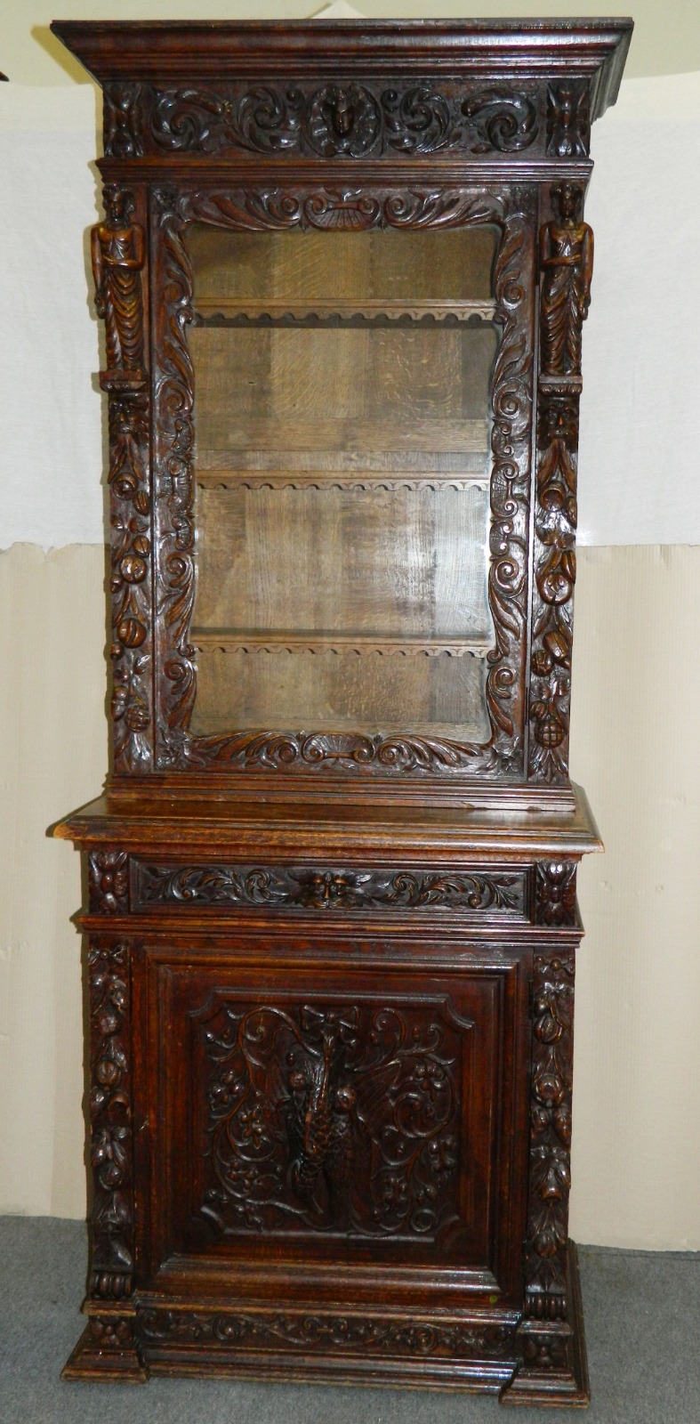 Carved Oak Bookcase Cabinet c.1890