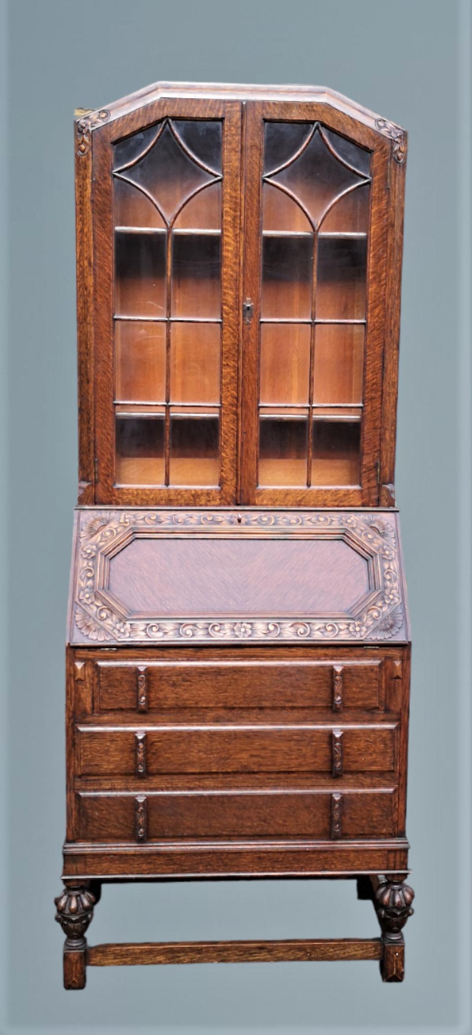 Carved Oak Bureau Bookcase with Sliding Interior (1 of 17)