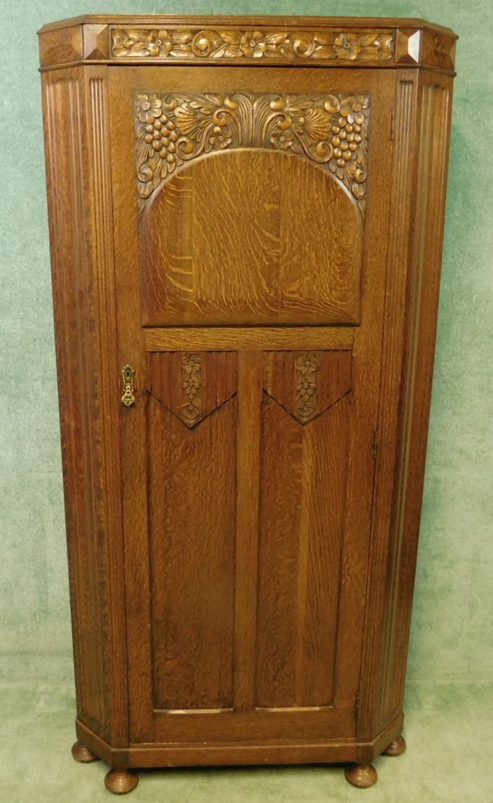 Carved Oak Canted Hall Wardrobe c.1920 (1 of 1)