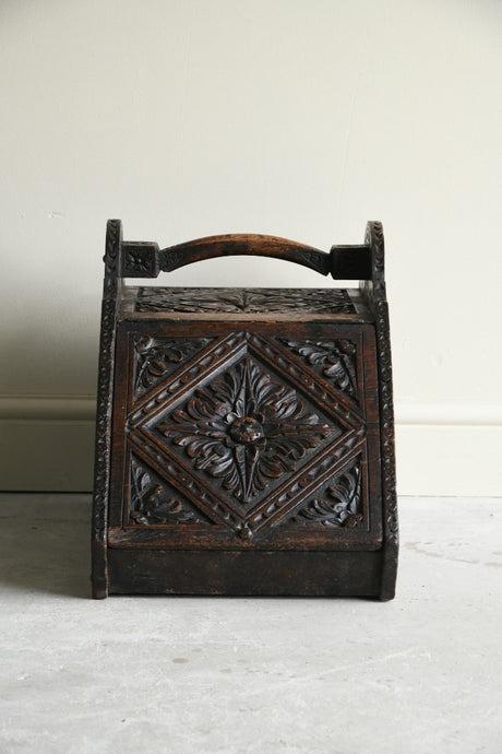 Carved Oak Coal Scuttle
