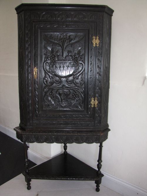 Carved Oak Corner Cupboard on Stand c.1850