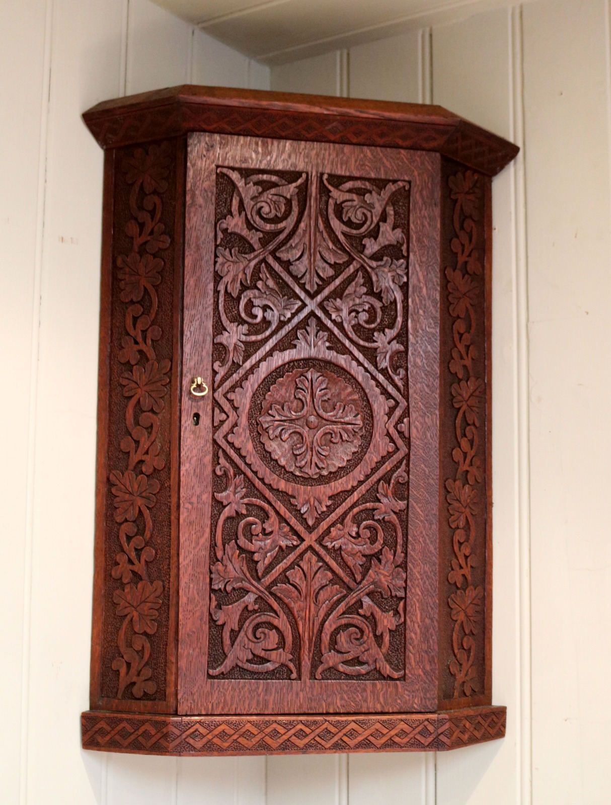 Carved Oak Corner Wall Cabinet c.1890 (1 of 1)