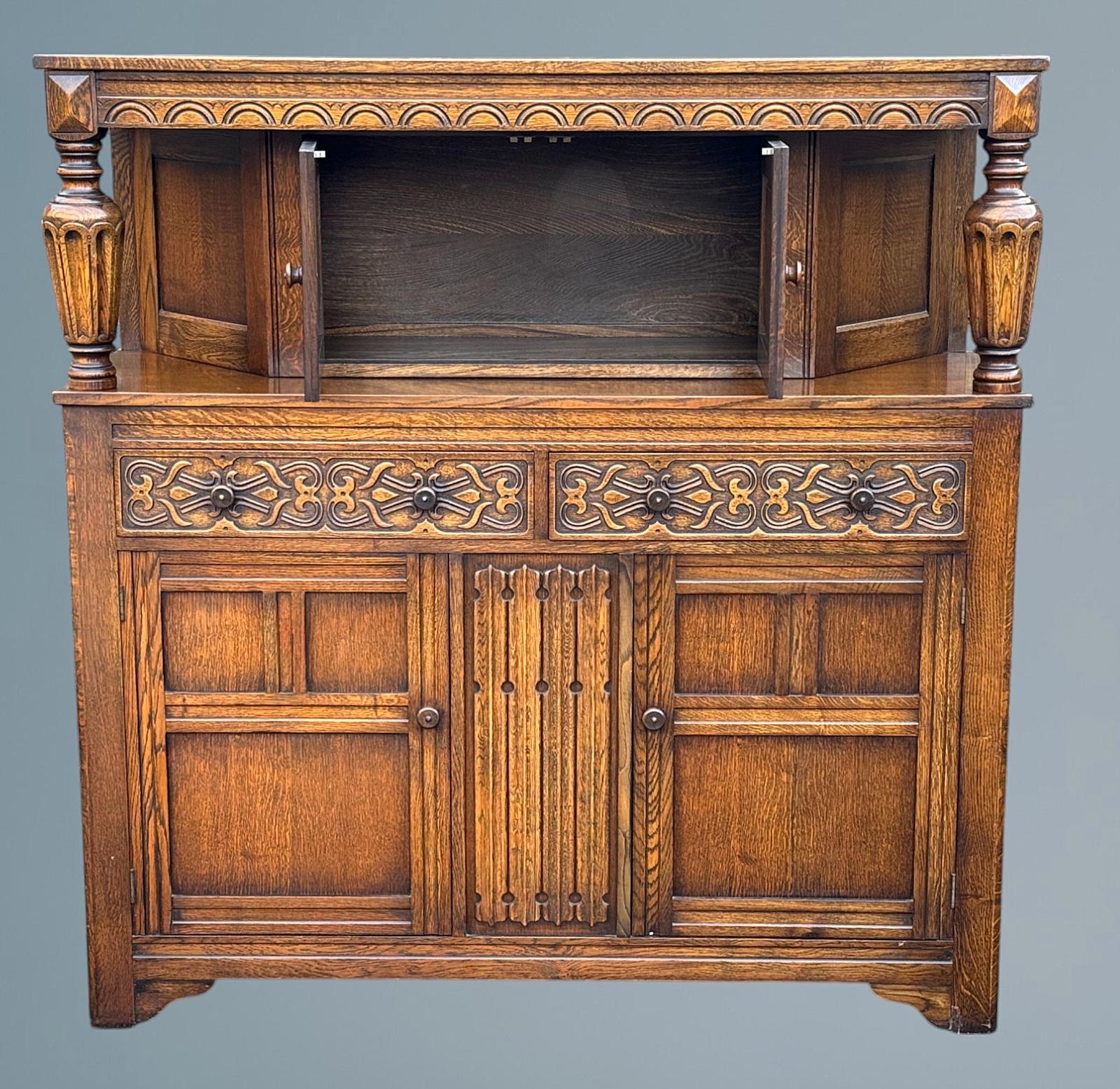 Carved Oak Court Cupboard / Oak Sideboard