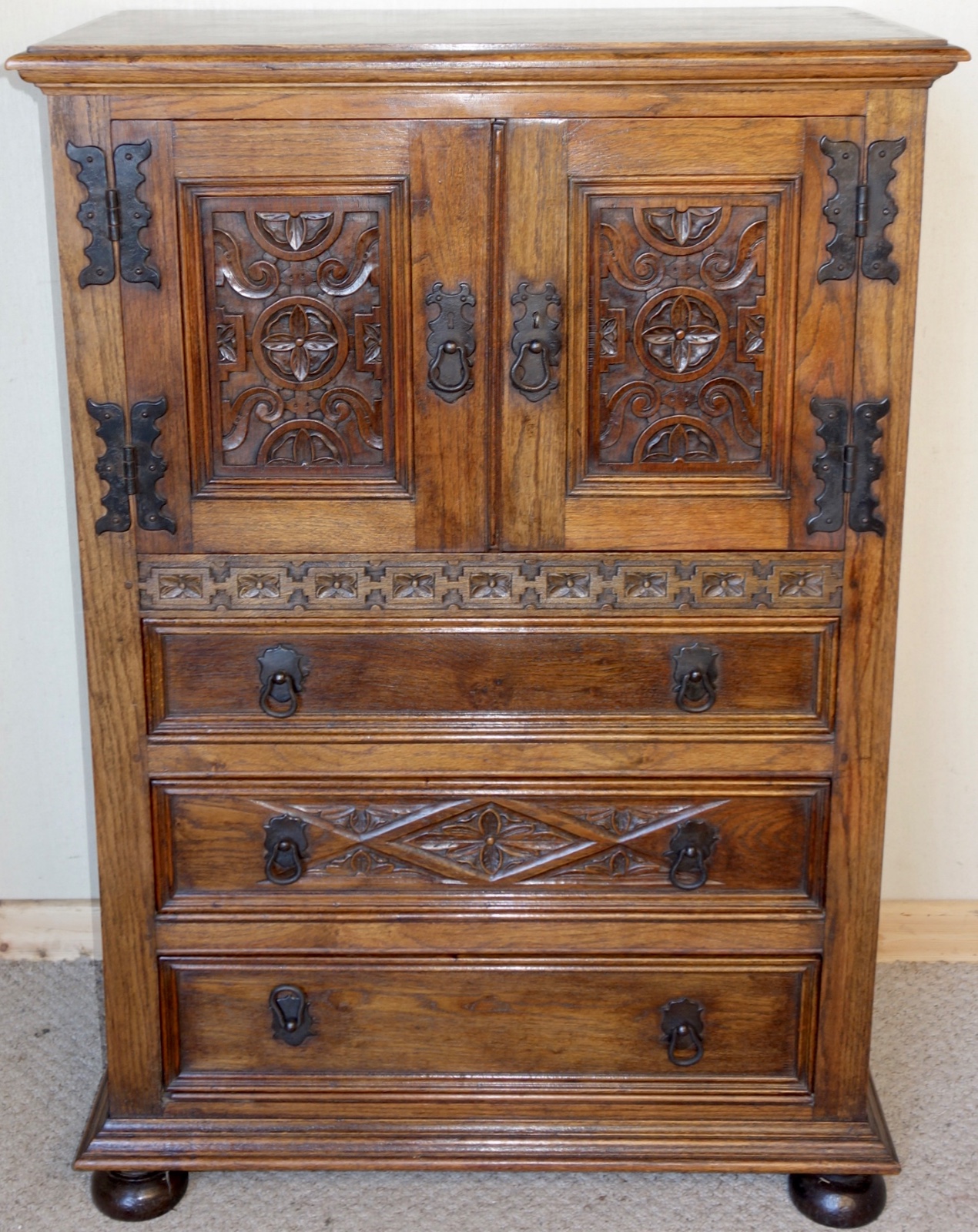 Carved Oak Cupboard Chest of Drawers c.1930 (1 of 1)