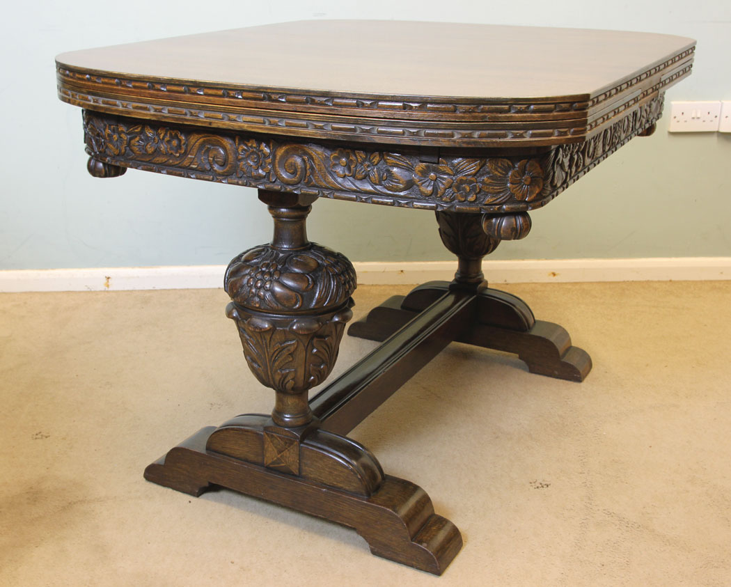 Carved Oak Draw Leaf Dining Table c.1930 (1 of 1)