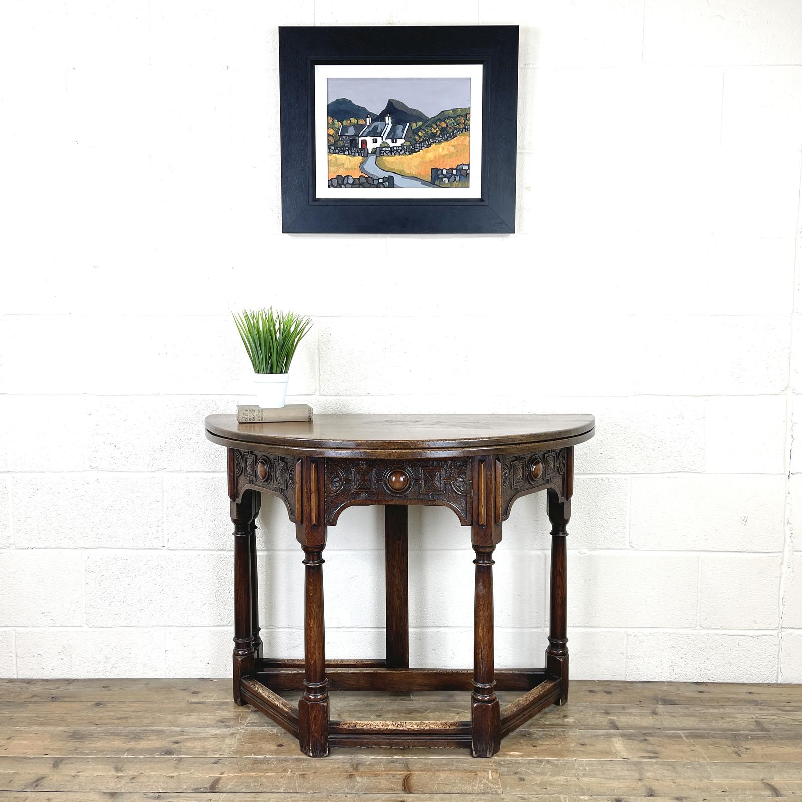 Carved Oak Fold-over Demi Lune Table (1 of 10)