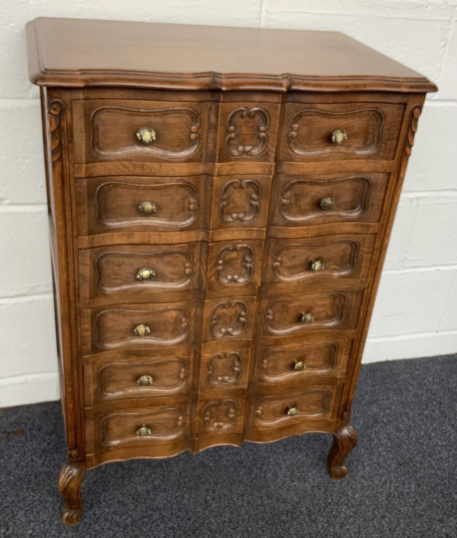 This CARVED OAK FRENCH CHEST OF DRAWERS is located in Cheshire, United Kingdom