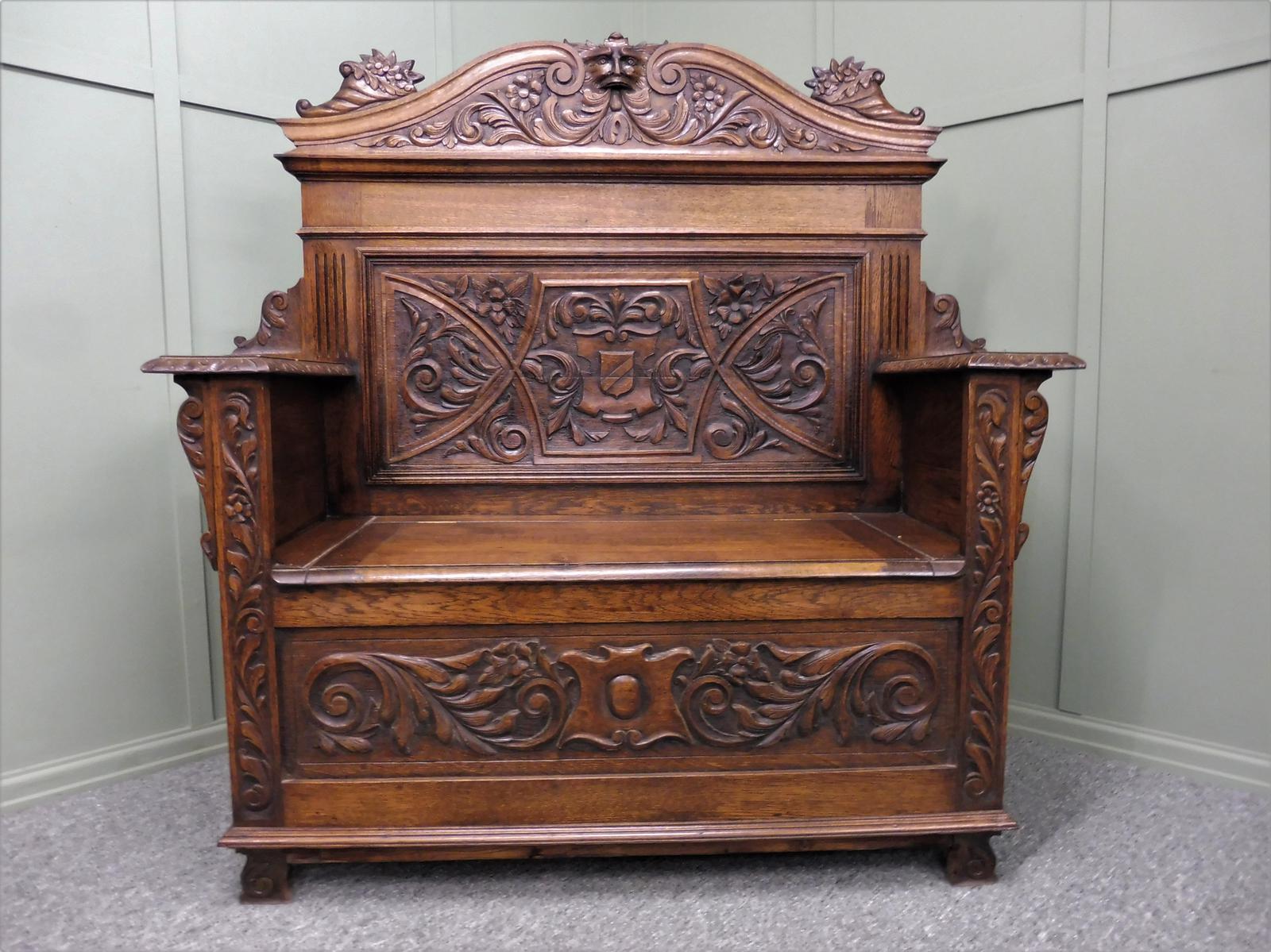 Carved Oak Green Man Bench
