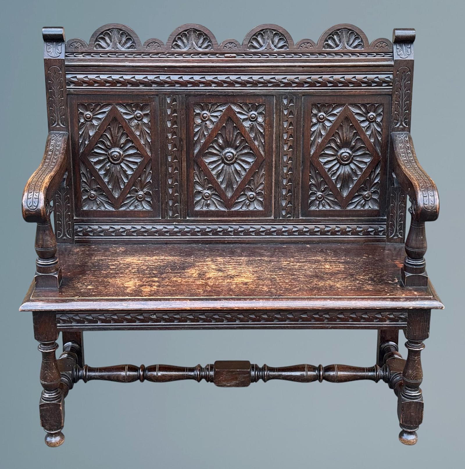 Carved Oak Hall Seat / Settle (1 of 14)